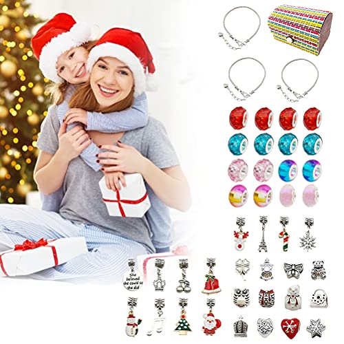 Specification: DIY Armband Maken Kit Kerst Adventskalender 2021 Kerst Thema DIY Sieraden Sneeuwpop Elk Sneeuwvlok Hanger Ornamenten…
