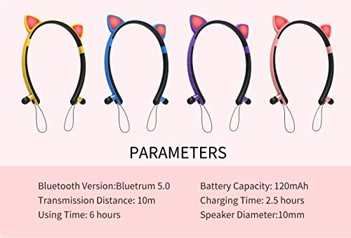 Specification: HNQH Nek Bluetooth Headset-Kat Oor Draadloze koptelefoon Magnetische Cartoon-headset met led-licht Hifi Stereogeluid…