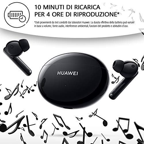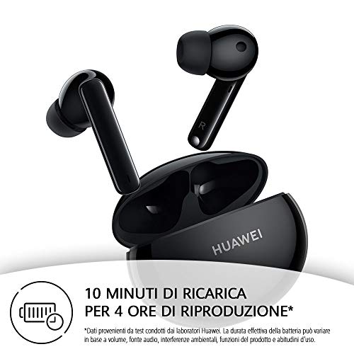【10 uur speeltijd en snel opladen】Huawei FreeBuds 4i heeft een ongelooflijke looptijd. Het kan tot 10 uur continu muziek afspelen met volledige lading. En de toonaangevende snellaadtechnologie garandeert je tot 4 uur luistergenot met een lading van 10 minuten – ideaal als je haast bent.