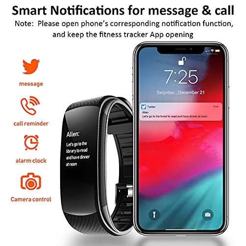 ✅【Oproep- en berichtherinnering】➤ Deze activiteitstracker trilt licht om je te informeren over inkomende oproepen, sms, e-mail, Facebook, Twitter, WhatsApp, Line, Skype, QQ, Wechat, enz. De inhoud van het bericht wordt weergegeven op het fitnesshorloge, waarvan het scherm automatisch oplicht wanneer u uw pols gedurende 1 ~ 2 seconden optilt en omdraait. U kunt inkomende oproepen ophangen via op het horlogescherm.
