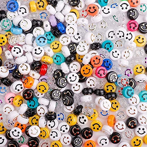 Specification: HZONGBO Smiley gezicht kralen 100 stks multicolor acryl smiley gezicht kralen for Diy Armband sieraden maken accessoires plastic platte ronde cartoon lachende kralen (Color : 1)
