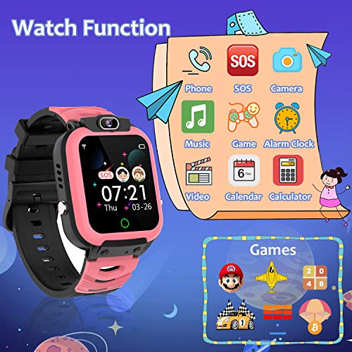 【Beste Gift smartwatch voor kinderen】 – Geen APP & Eenvoudig te instellingen, hoeft geen app te downloaden, hoeft geen mobiele telefoon aan te sluiten, alle functies zijn ingebouwd in het horloge, zeer eenvoudig te bedienen voor kinderen (Plaats gewoon de SIM te gebruiken. ) Dit spel telefoon horloge ontworpen voor 3-12 jaar oude jongens en meisjes, Ideaal cadeau voor verjaardag en andere feestdagen!