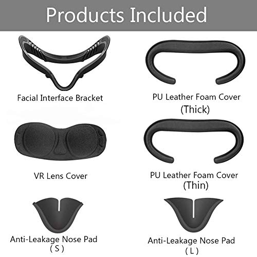 Specification: Kaxofang 6-In-1 Set VR Facial Interface Bracket & PU Leather Foam Face Pad &Anti-Leakage Nose Pad for Quest 2(Black)
