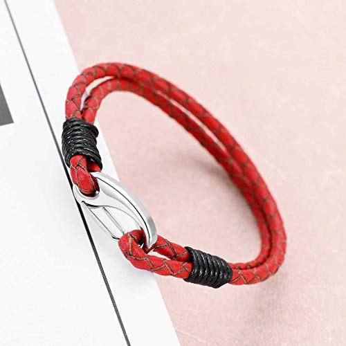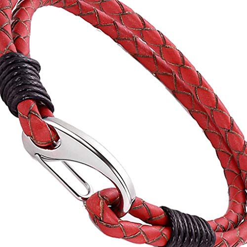 De rode lederen armband is ontworpen met een legering gesp die maakt het gemakkelijk te gebruiken en handig om op te stijgen.