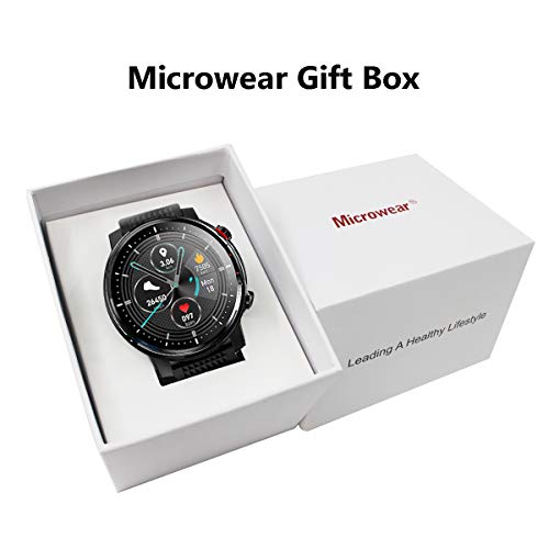 Specification: Microwear Smartwatch voor heren, fitness-tracker, smart watch, rond, IP68 waterdicht, sporthorloge met zaklamp…