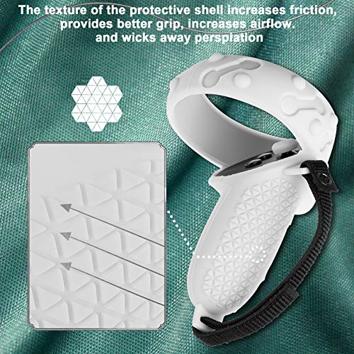NEWZEROL Grip Cover voor Quest 2 Touch Controller [Volledige Coverge] Anti-Gooi Handvat Beschermende Mouw Accessoires [Met 2 Stuks Verstelbare Polsknokkelband + 2 Stks Duim Stick Caps] – Wit