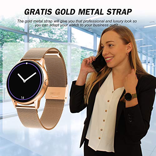 Jaylete Smartwatch voor dames, fitnessarmband, horloge, met gratis metalen band, voor sport, met bluetooth…