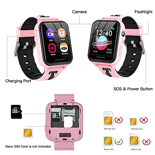 Smooce Smartwatch kinderen Telefoon,Kids Smartwatch Muziekspeler met Sd-kaart 7 Puzzel Games Call SOS Camera Alarm…