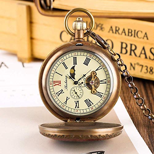 Specification: Zakhorloge, Retro Koper Mechanische Tourbillon Fasen Maan Zon Handopwinding Vintage Collectibles Klokken FWEOOFN